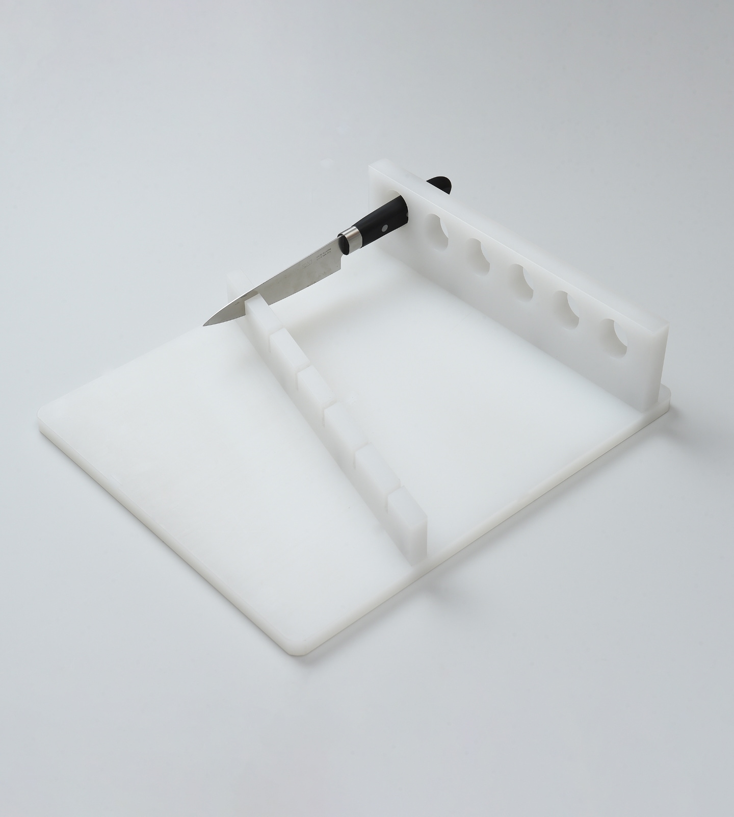 まな板の上でも簡単における包丁置き。狭いスペースでも場所をとらずに取り付けられ取り外しも簡単。容器は丸洗いできます。