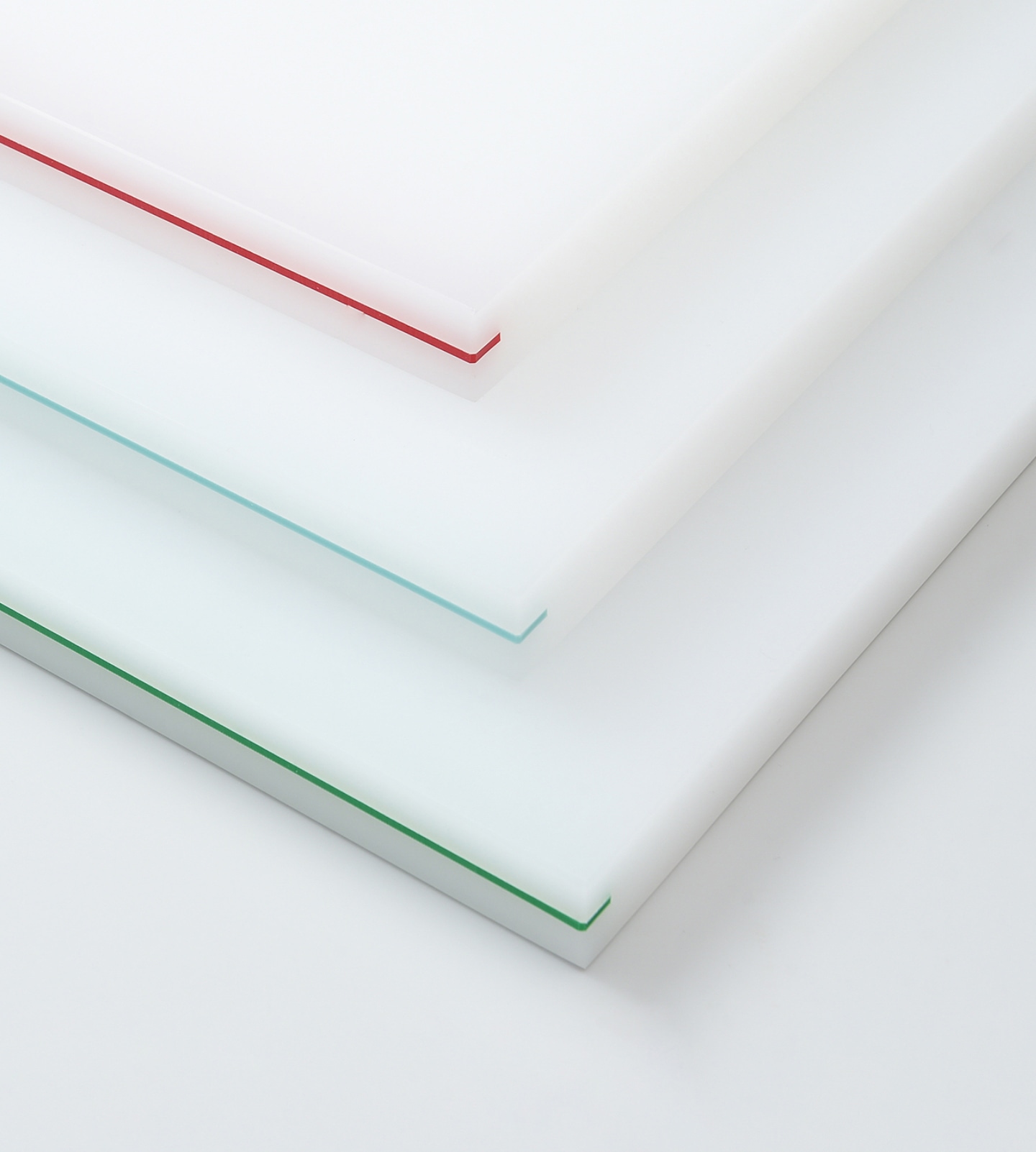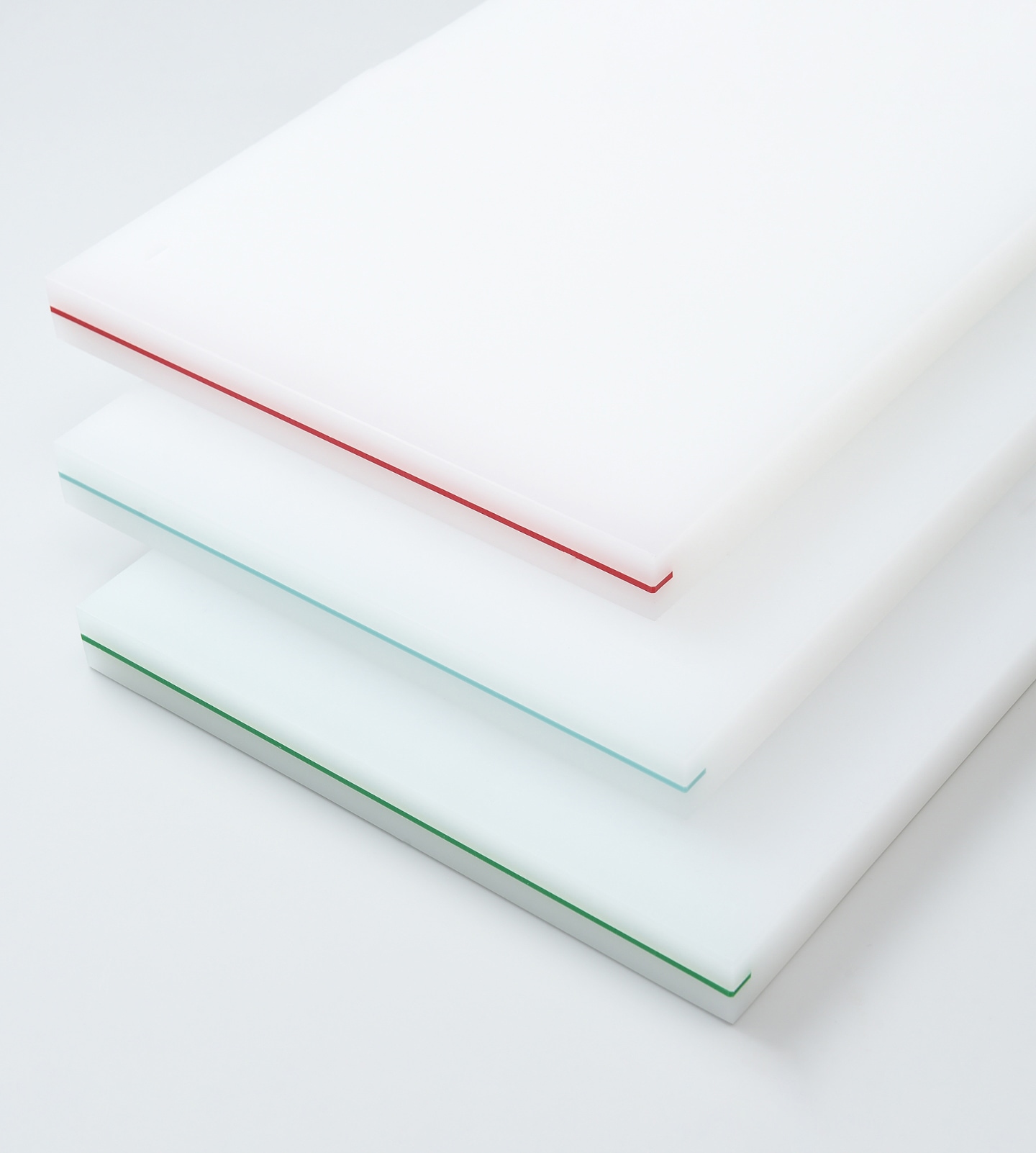 色によって食材ごとに使い分けができます。食品のシミや汚れがつきにくいので、まな板が黄ばむことなく、常に清潔で衛星的。刃あたりも滑らかで包丁を傷めないので、長時間まな板を使用するプロの料理人の方にもおすすめです。